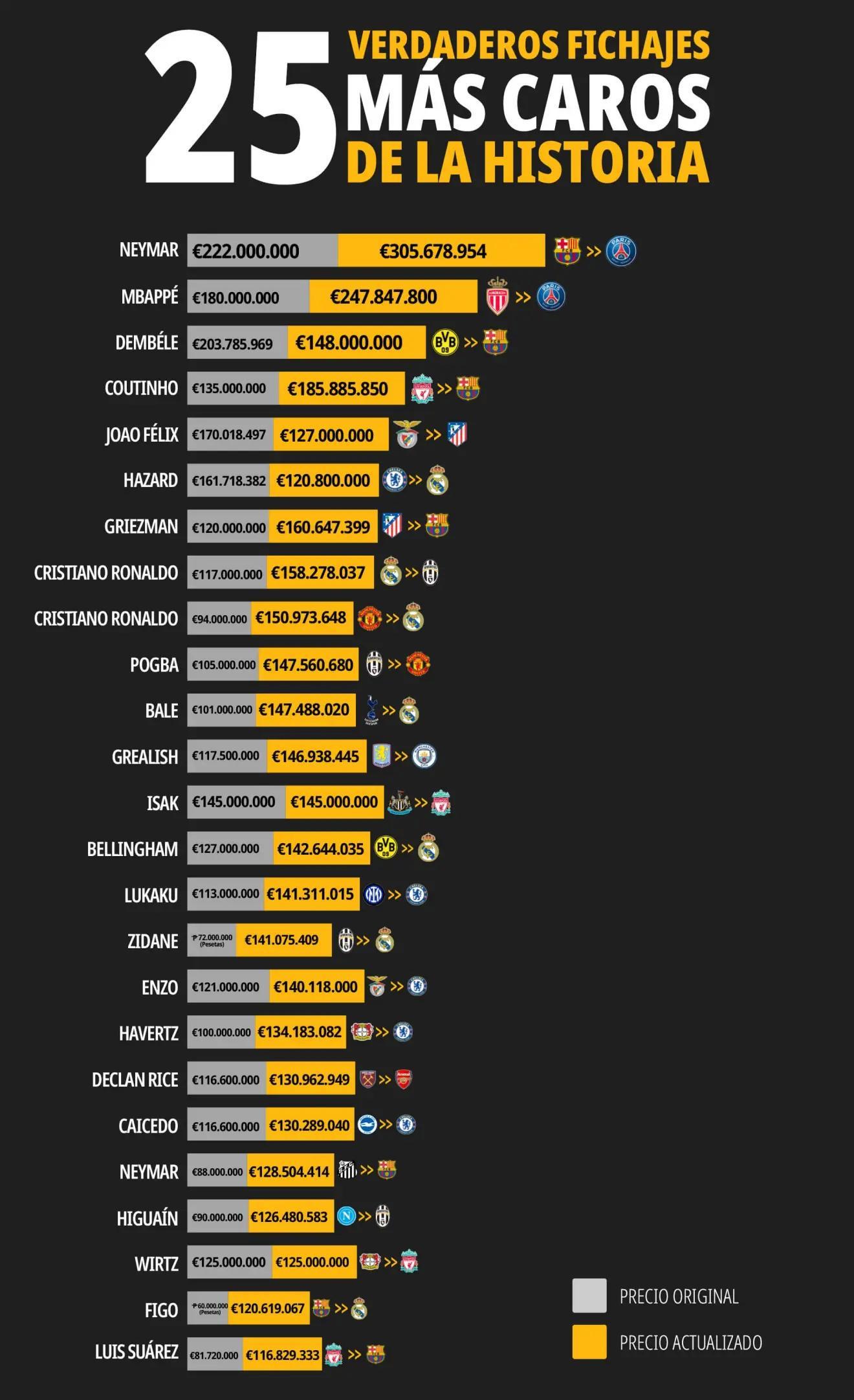 马卡援引数据机构重算转会费:内马尔3.06亿历史第1,姆巴佩第2